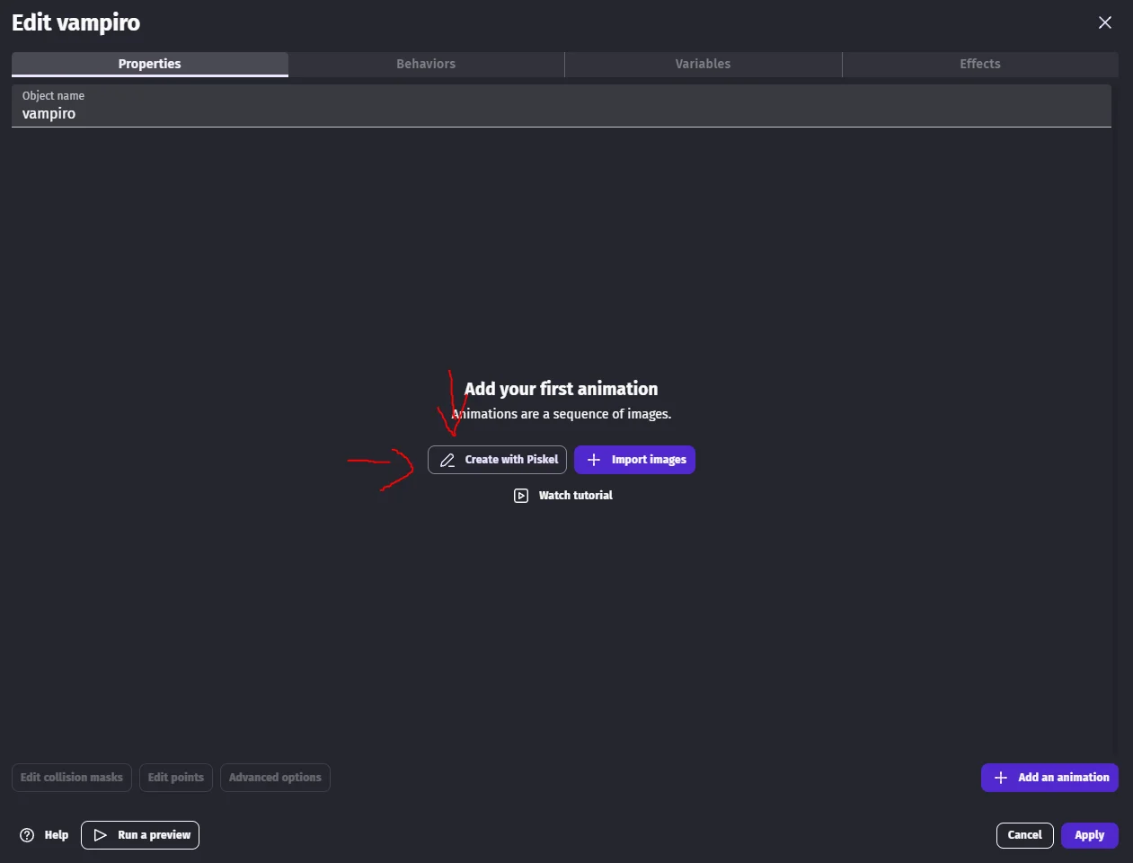 Como importar sprites para o GDevelop?
